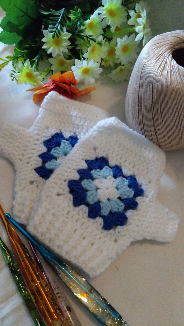Mitaines faites main et au crochet. Fil acrylique, longueur 16 cm et largeur 11 cm