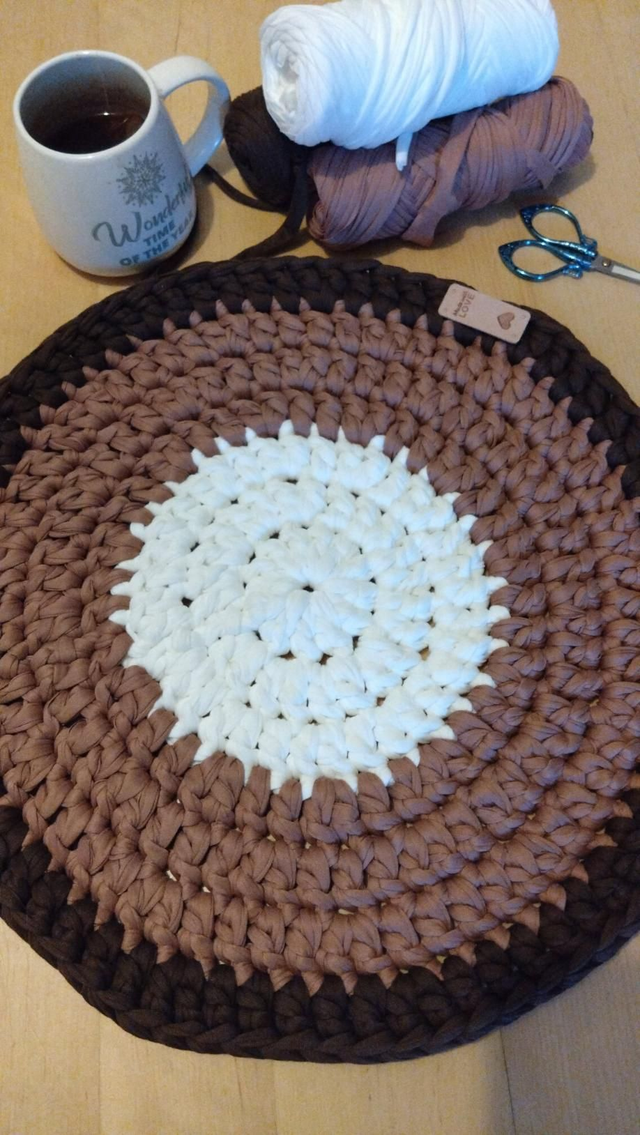 Tapis pour chat fait main et au crochet. 100% polyester, 42 cm de diamètre.